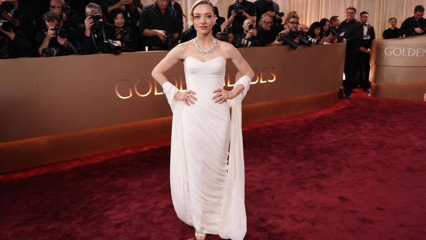Amanda Seyfried, escultural de Cloud Dancer en un Versace personalitzat, als Globus d’Or 2026. /