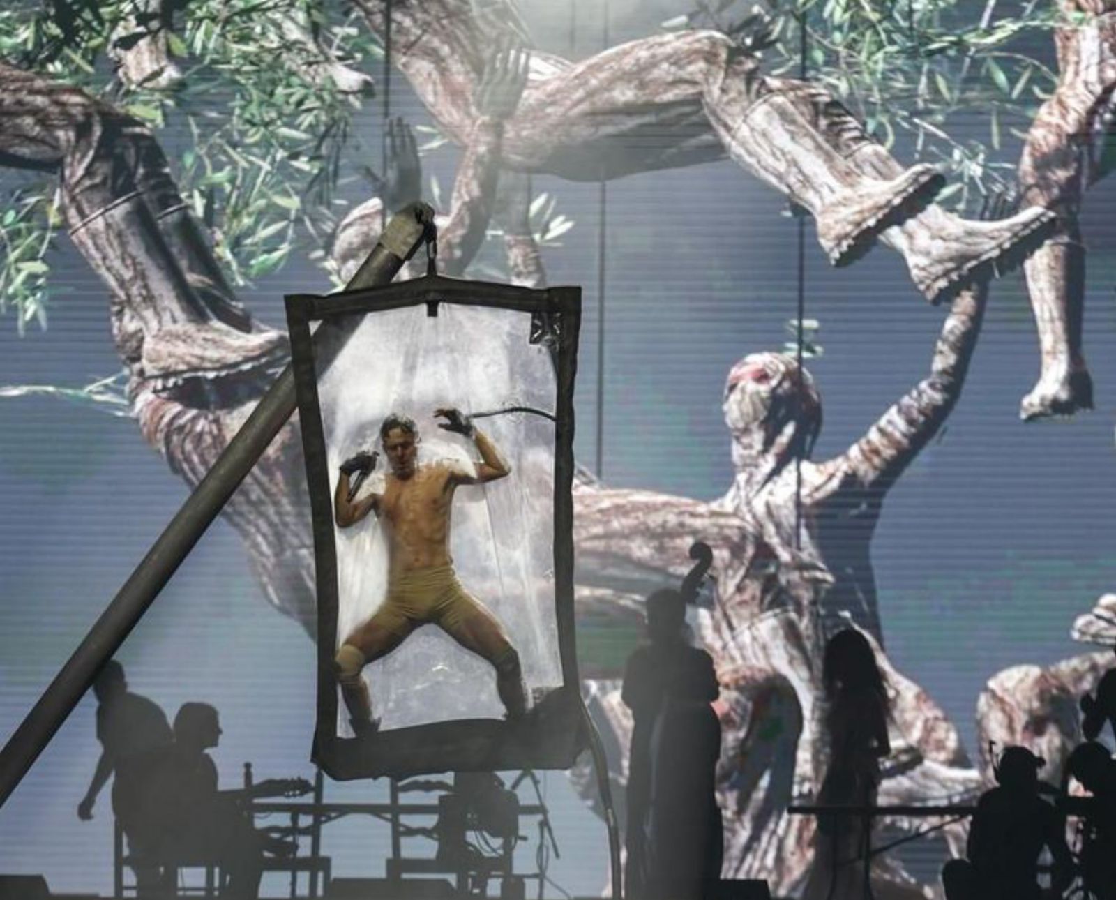 Però la música va ser troncal, cuidada i sòlida, en intervencions com la de Fermin Muguruza, que es va bolcar en el devastador ska de Yalah yalah Ramallah, en companyia de la tropa de Dabke. Grans contrastos d’estils, amb el blues del desert del carismàtic grup tuàreg Tinariwen, manejant les seves punxants guitarres elèctriques, i la copla lorquiana d’Anda jaleo dibuixada pel violí de Laura Pacios, de Las Migas. Hi va haver agitació edificant amb Xavi Sarrià (ex Obrint Pas) i Salma Alhakim (Hayat-Vida) i una mica de folklore a l’estil eurovisiu amb Zeyne. I La Fura dels Baus va brindar una performance que venia a ser el crit de socors d’un subjecte atrapat i suspès a l’espai.