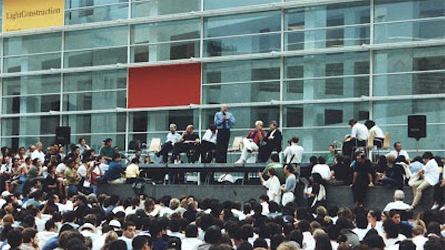 Jacques Herzog, Norman Foster, Peter Eisenman i Daniel Libeskind, al Congrés d’Arquitectura del 1996 a Barcelona. /