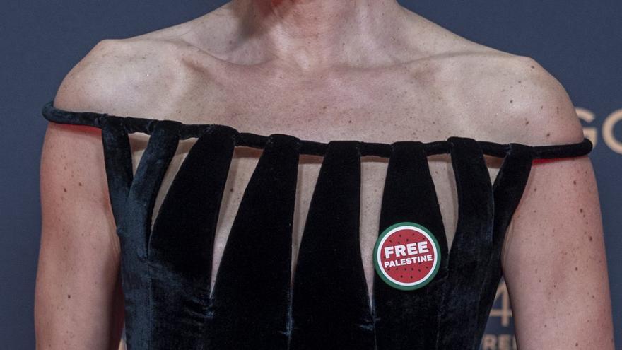 La majoria dels assistents al ‘photocall’ de la cerimònia dels Goya portaven una xapa amb el lema ‘Free Palestine’ i es van mostrar molt inquiets per l’atac dels Estats Units i Israel a l’Iran. Centenars de fans afortunats es van emocionar amb les estrelles.