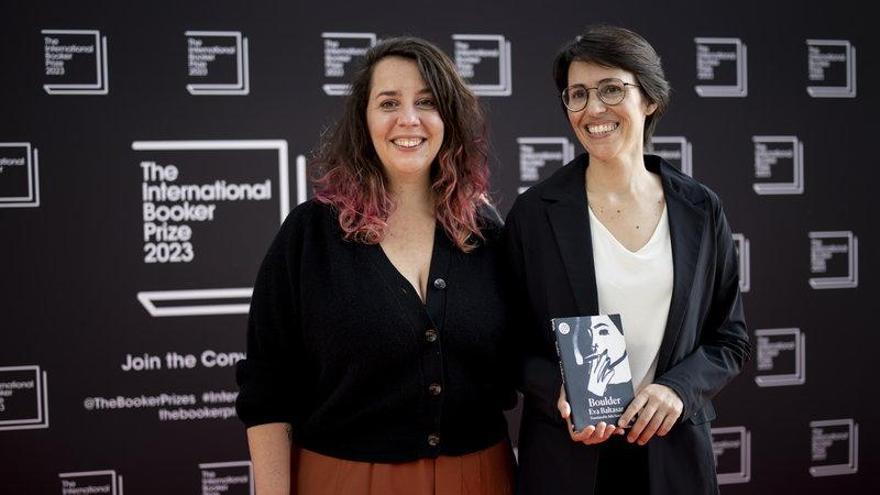 Eva Baltasar, finalista del Booker Internacional el 2023, al costat de la seva traductora Julia Sanches /