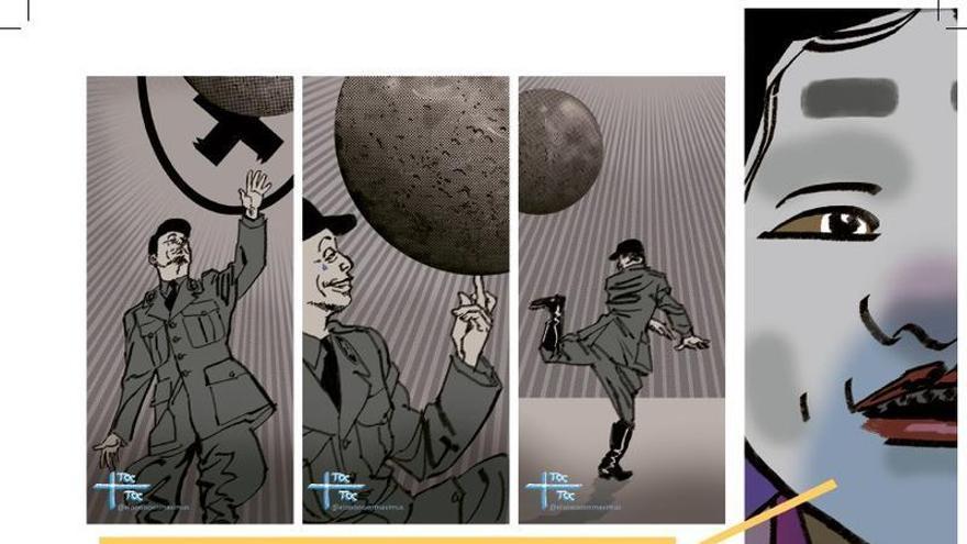 Prior imagina un món potser no tan futurista en què el seu «Mask» posa el focus en la droga que s’ha trobat a la Lluna i busca entre els més poderosos del planeta com finançar el seu projecte d’explotació del satèl·lit. L’empresari protagonitza al llibre una de les escenes icòniques del món del cine, la de Charles Chaplin emulant Hitler, ballant amb el globus terraqüi a ‘El gran dictador’. «És un dels meus homenatges, ho vaig fer pel pur plaer de dibuixar-lo, com el de ‘2001. Odisea del espacio ’ [amb l’Homo sapiens utilitzant un os com a arma]», admet. La sàtira s’acarnissa amb el tecnofeudalisme. «És un feudalisme a través de la tecnologia. Els antics senyors feudals avui són els que dirigeixen les tecnològiques de Silicon Valley, magnats dels quals Trump ha rebut molts diners», denuncia.