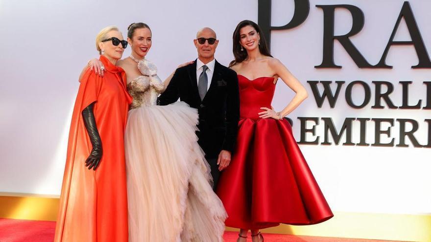 Meryl Streep, Emily Blunt, Stanley Tucci i Anne Hathaway (Andy), en la ‘premiere’ mundial a Nova York, el 20 d’abril. /