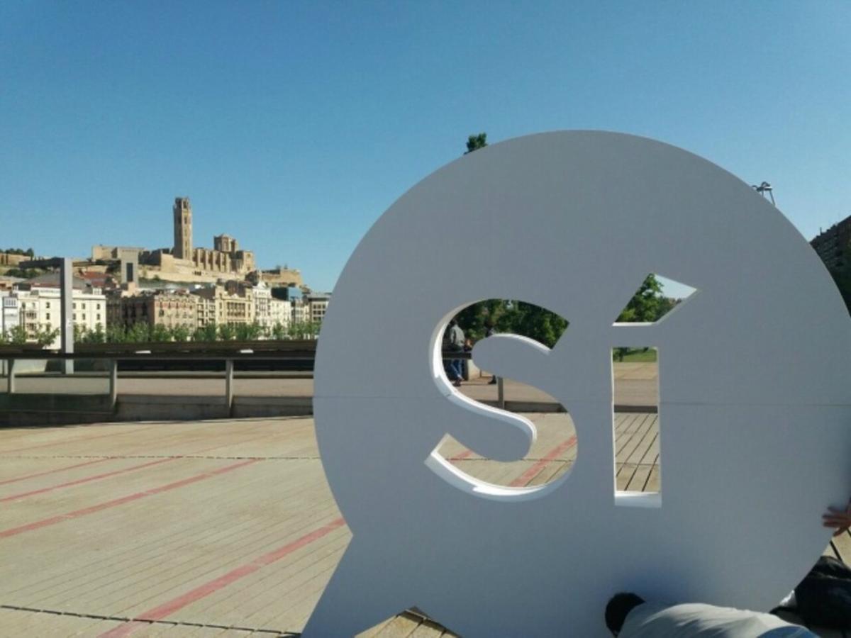 Aquest diumenge han aparegut en diverses ciutats de Catalunya uns 'sí' gegants en forma de bafarada de còmic. Tarragona, Lleida, Girona o Vic han sigut algun dels punts on els ciutadans han pogut presenciar la curiosa escena.