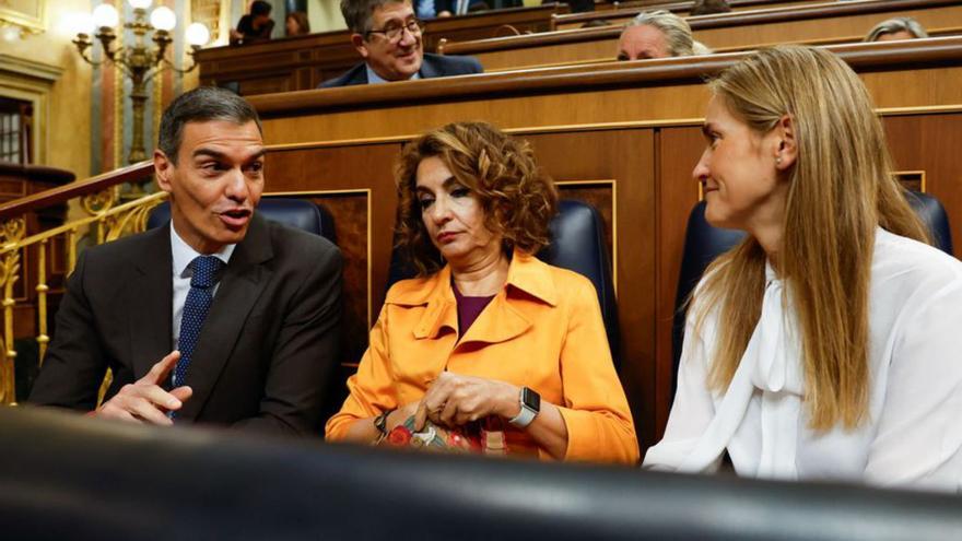 Pedro Sánchez, María Jesús Montero i Sara Aagesen al Congrés. /