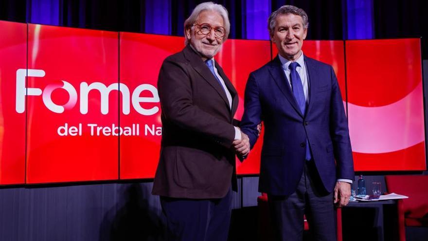 El president de Foment, Josep Sánchez Llibre, i el president del PP, Alberto Núñez Feijóo, durant un acte a Barcelona /