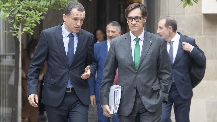 El conseller Òscar Ordeig amb el president Salvador Illa, al Palau de la Generalitat /
