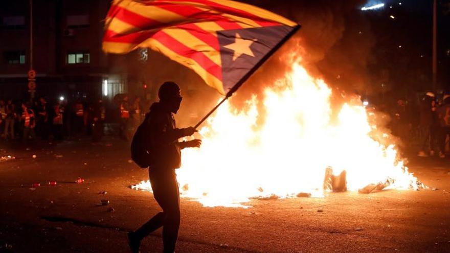 Incidents en una protesta convocada per Tsunami Democràtic als voltants del Camp Nou el 2019. /