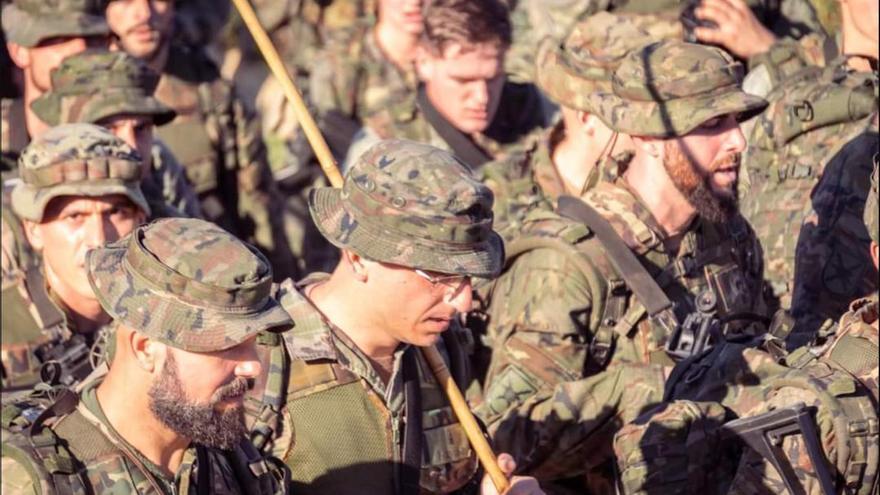 Soldats del Grup d’Artilleria de Costa, a la tornada d’una marxa a San Fernando (Cadis) el gener del 2024. /
