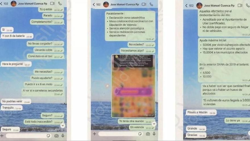 Captures de pantalla de la conversa que van mantenir Cayetano García i José Manuel Cuenta el dia de la dana. / /