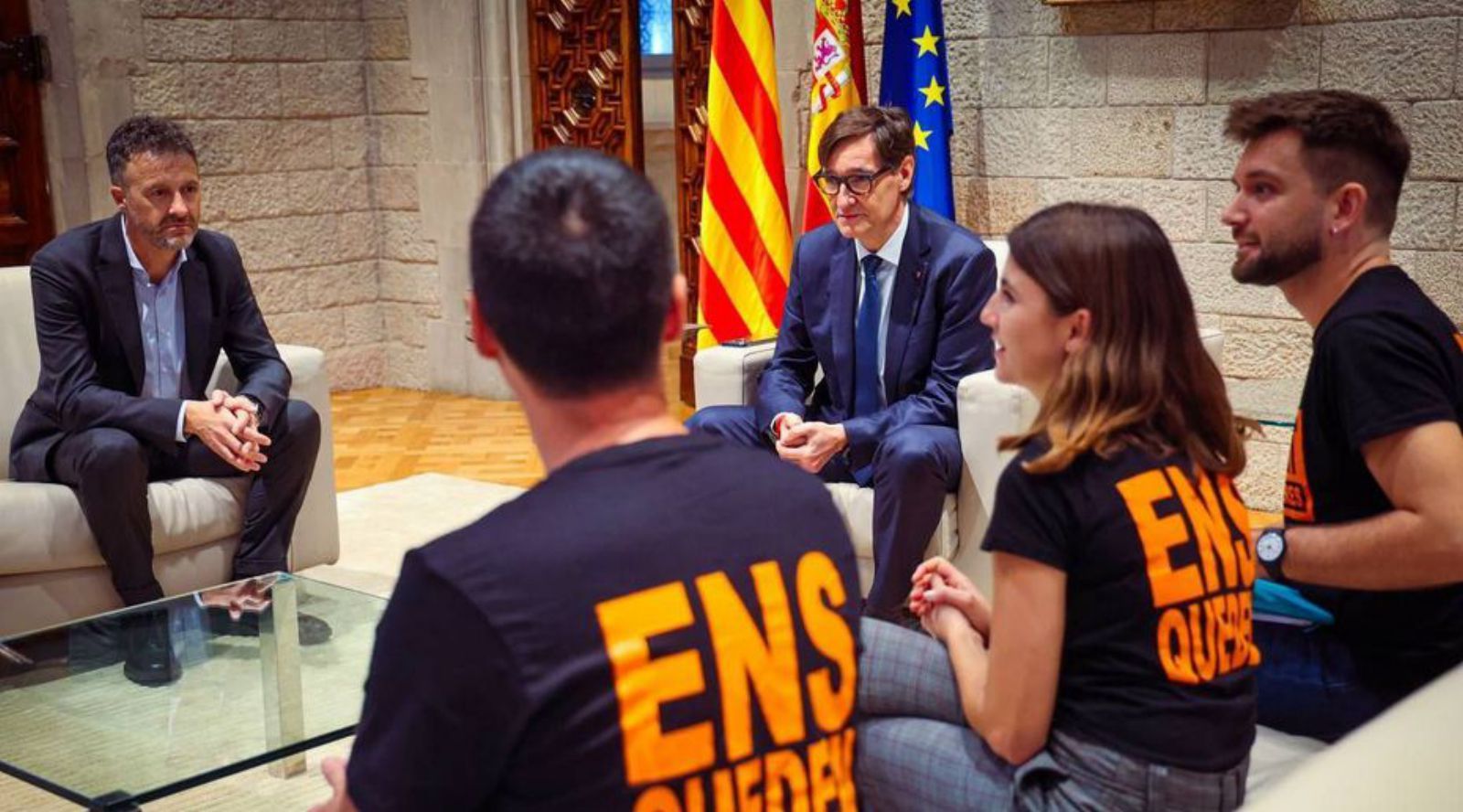 Salvador Illa, amb representants del Sindicat de Llogateres. | JORDI BEDMAR / PRESIDÈNCIA / ACN /