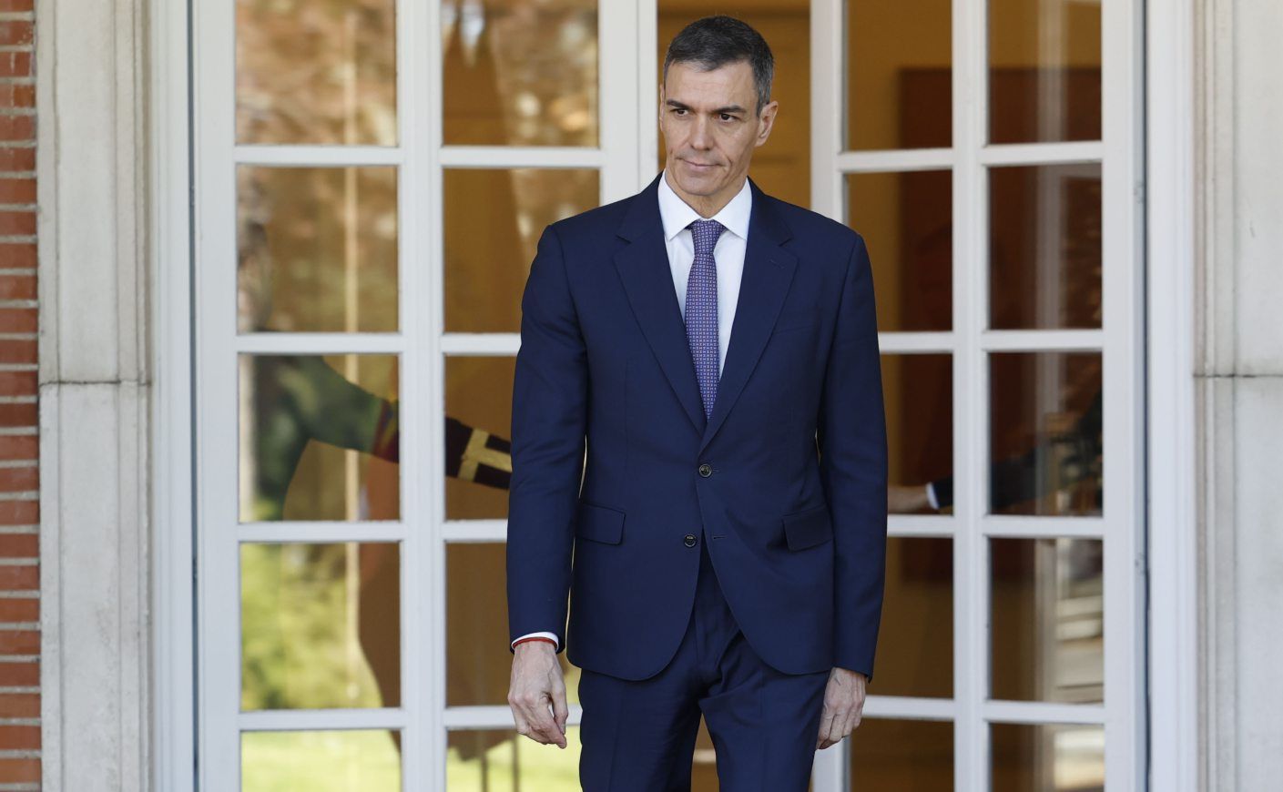 El president del Govern, Pedro Sánchez, a l’entrada de la Moncloa, el 27 de març. | /