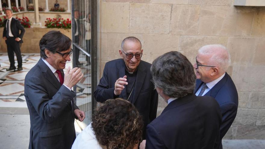 Poc després, els consellers han anat arribant al Palau, alguns amb una parada prèvia en una cafeteria pròxima a la plaça de Sant Jaume coneguda pel sabor del seu cafè, per arribar amb puntualitat a la missa matinera. Tot estava preparat a la capella de Sant Jordi, situada a pocs metres del despatx del president, i en la qual aquest any ha oficiat el cardenal Joan Josep Omella juntament amb el prior de la capella, Josep Maria Turull, cosí del secretari general de Junts, Jordi Turull. Catalunya no deixa de ser un mocador.