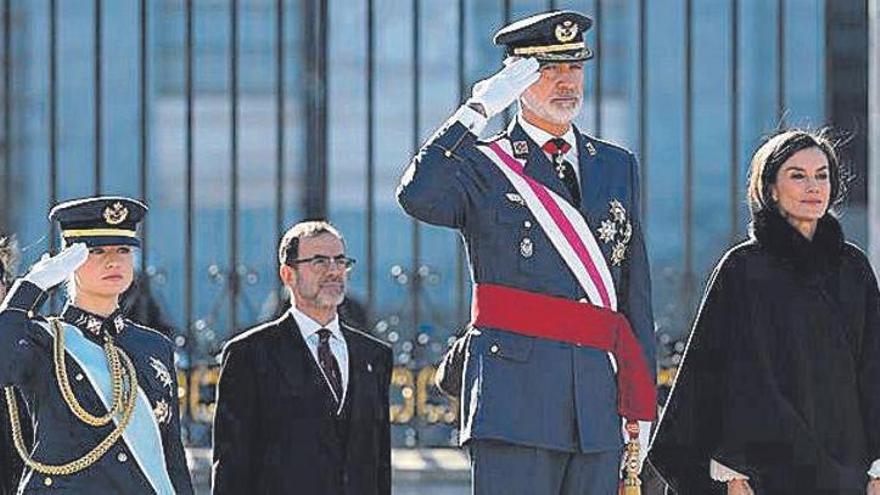 El rei Felip VI, Letizia i la princesa Elionor durant la celebració de la Pasqua Militar, aquest gener passat. /
