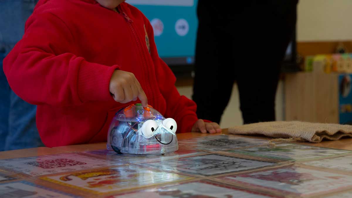 Alumnes de l'escola Vista Alegre de Mataró aprenen amb el robot blue bot. Foto: Elisenda Pons