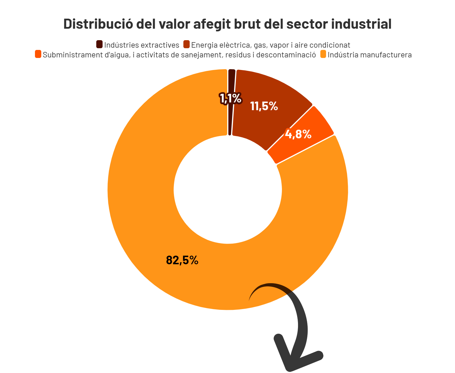 Catalunya està ben posicionada per liderar aquesta nova etapa. La indústria ha mantingut el seu pes al voltant del 19% del Valor Afegit Brut (VAB) des del 2010 fins a l’actualitat, superant fins i tot el creixement de la indústria europea els darrers anys. La diversitat sectorial de la indústria catalana és un important factor de resiliència davant possibles crisis. Els sectors de la química, l’automoció, el farmacèutic, l’agroalimentari i la maquinària, tenen un pes important però cap d’ells supera el 15% del total de la indústria. A més, Catalunya disposa d’infraestructures com el Mare Nostrum en supercomputació, centres tecnològics punters, universitats competitives i ecosistemes innovadors que atreuen talent i molta inversió estrangera.
