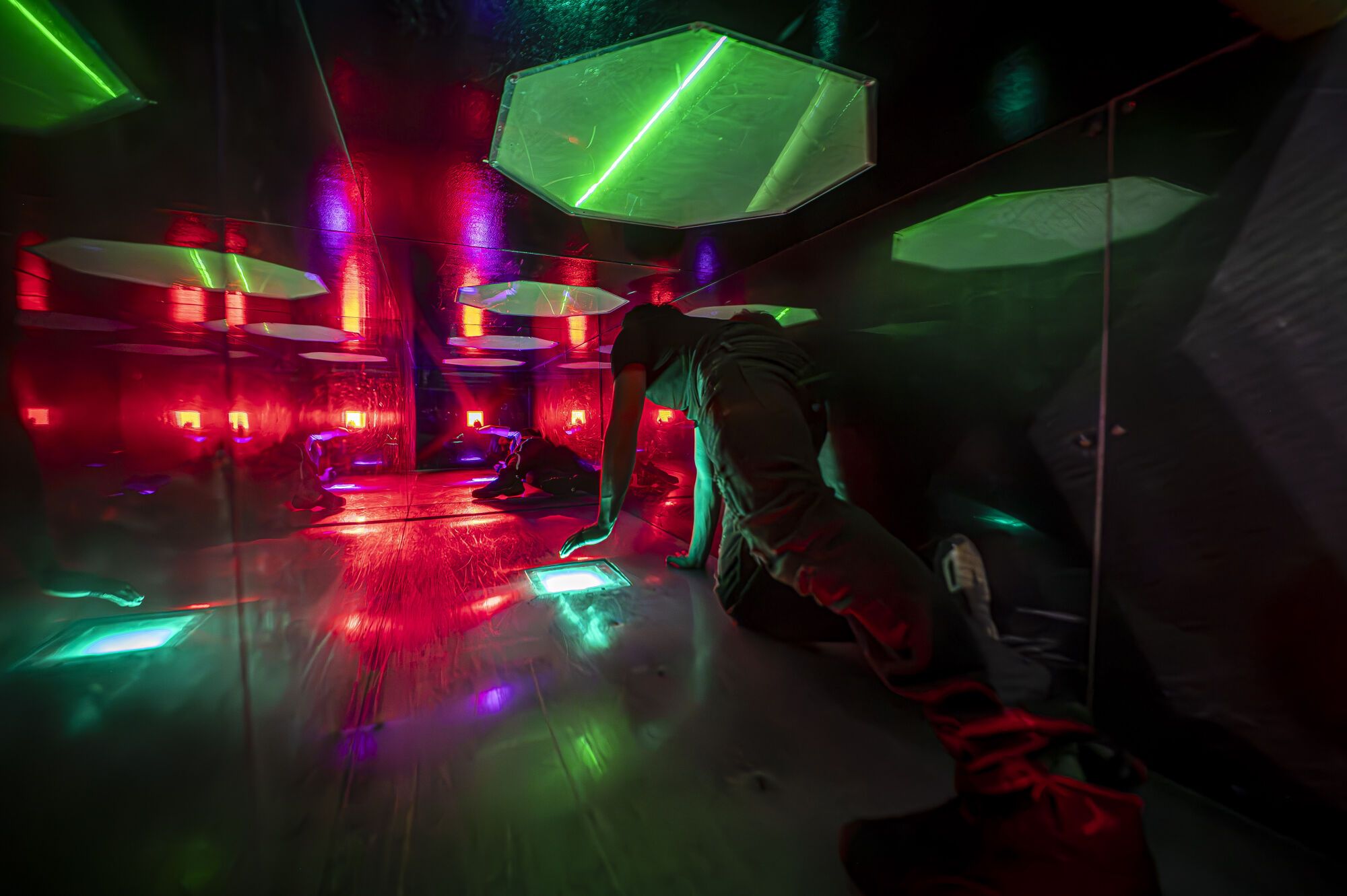 L’espai pot acollir fins a 70 persones de manera simultània, ja que el recorregut, encara que s’ha de completar en 25 minuts (el que dura una partida), és lliure –"no, no hi ha itinerari marcat, no som un Ikea", fa broma la Yolanda–. Això sí, per orientar-te, al llarg de la instal·lació hi ha pantalles amb temps i cartells informatius amb els codis de colors, que expliquen la recaptació de punts: des dels botons grocs, els més fàcils, fins als vermells, que t’exigiran més piruetes que les mentals amb les quals Von der Leyen justifica les ofensives nord-americanes. ¿Estàs preparat per suar.