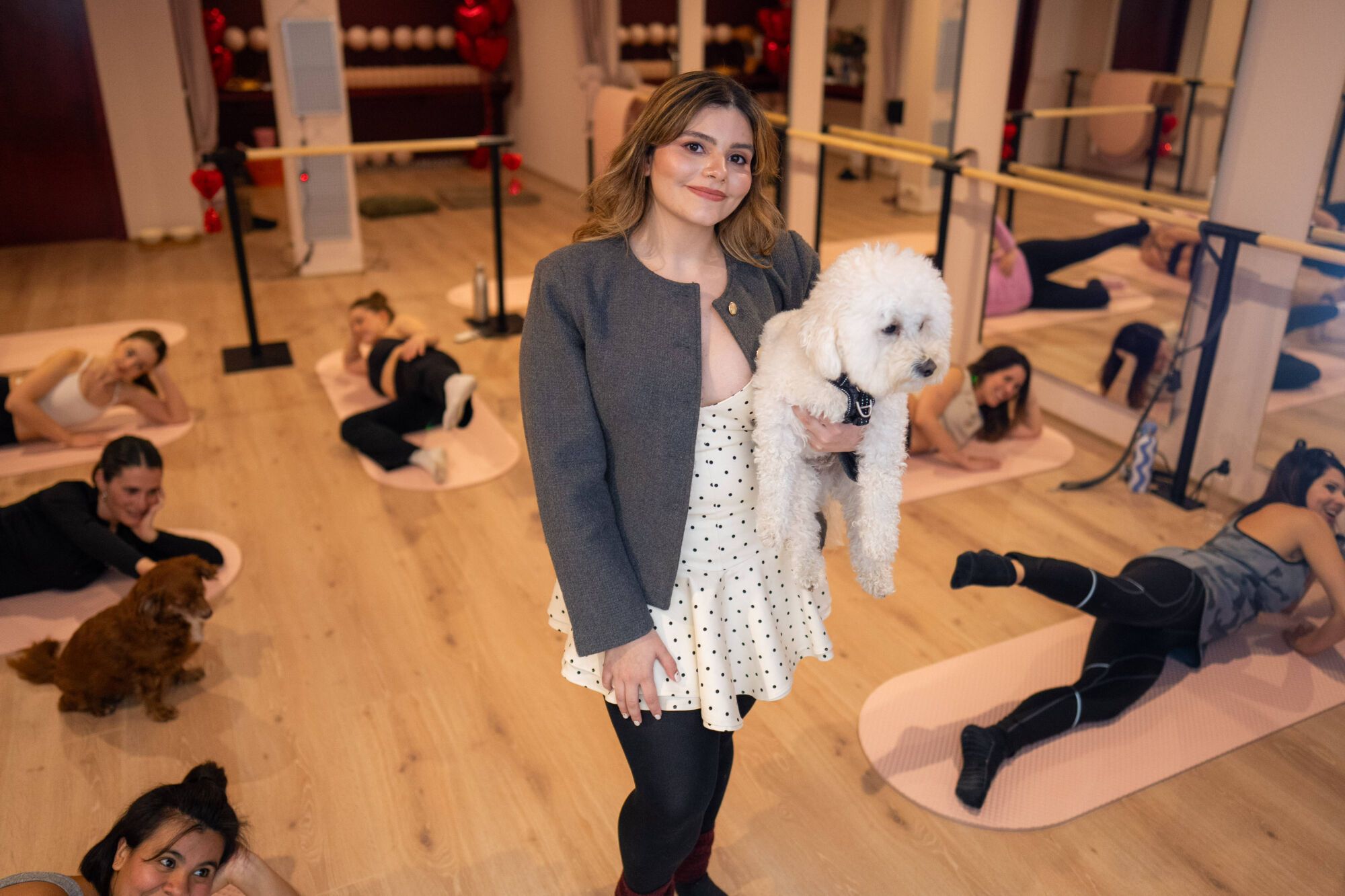Gabriella la Roche, propietària. Obertura de Élevé Barré Studio, un nou espai pet friendly on es practica fitnes de barre acompanyat de gossos, combinant exercici i benestar animal. /