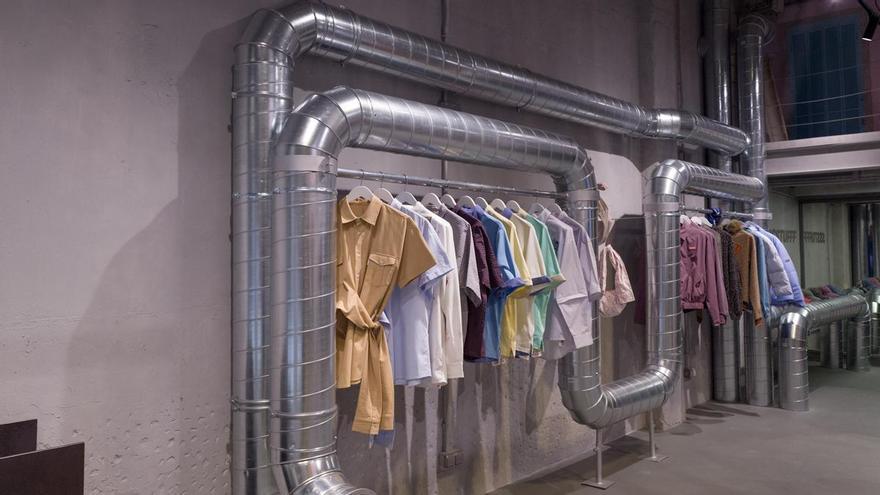 Ara, arrenca la primavera del 2026 amb una aparença totalment renovada. Després d’un tancament de diversos mesos per reformes, han dit adeu a l’estètica supermercat i han donat la benvinguda a un ‘look’ industrial: ara la botiga sembla que sigui una obra en construcció. Tenen penjadors sobre bastides,tubs a la vista, maons nus, metall industrial en forma de banc, un taulell amb rajoles de clavegueram i fins i tot un emprovador amb cortines de tela d’obra i penjadors amb aixetes.