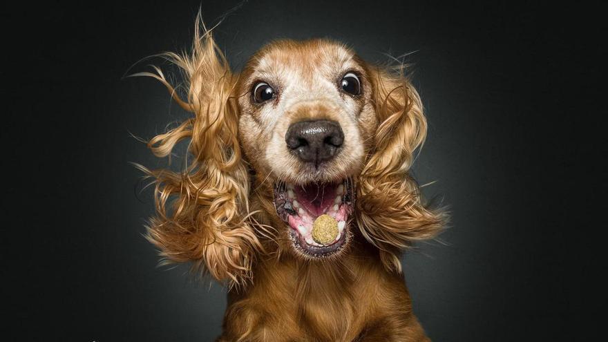 Uno de los perros intentando atrapar una chuche, congelado por Christian Vieler. /