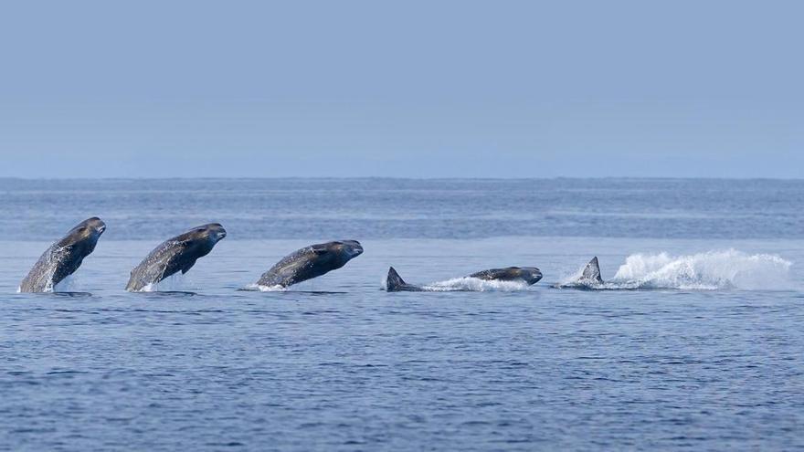 Seqüència captada per David Jara d’una cria de catxalot saltant. /