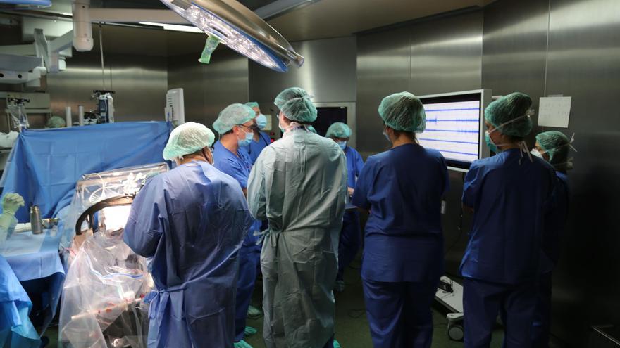 Un equip de Neurocirurgia pediàtrica de l’Hospital Vall d’Hebron, durant una de les operacions per implantar l’estimulació cerebral profunda /