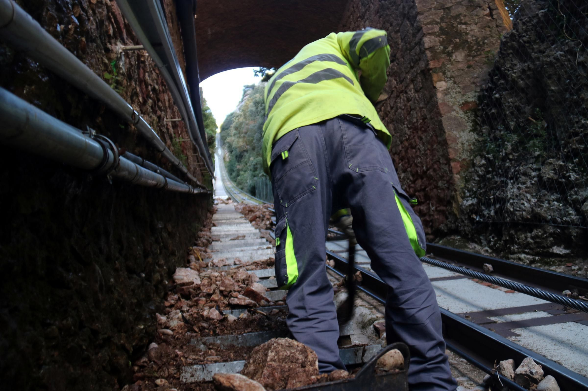 Treballs de retirada de material de la via del funicular de Sant Joan, el 22 de setembre passat /