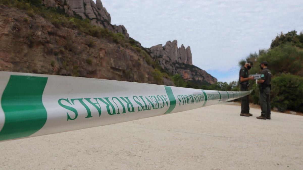 Agents Rurals tallant l'acces al parc natural de Montserrat per risc extrem d'incendi, el 13 de juliol de 2021 /