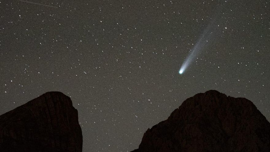 El cometa Lemmon des d’una de les vessants de la muntanya. /