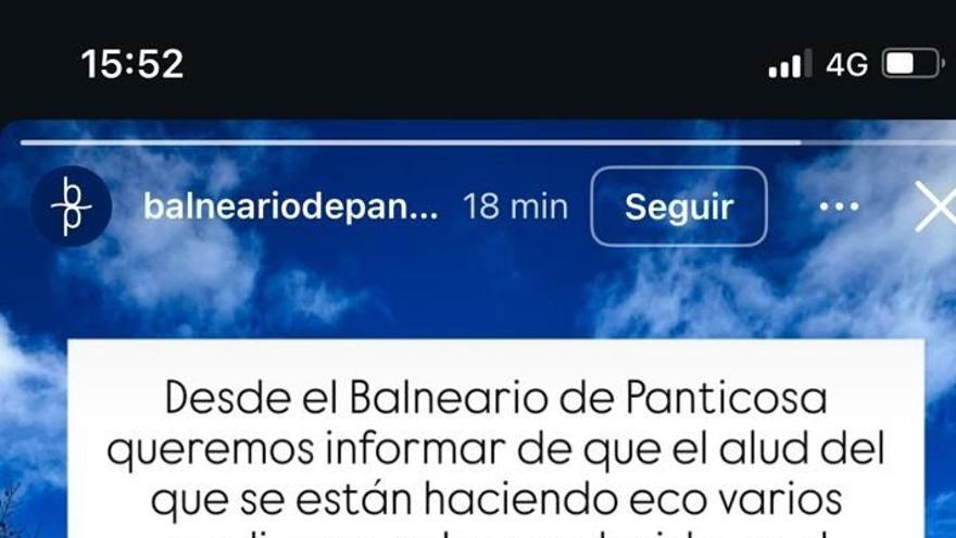La comunicació del balneari de Panticosa en el seu compte d’Instagram. /