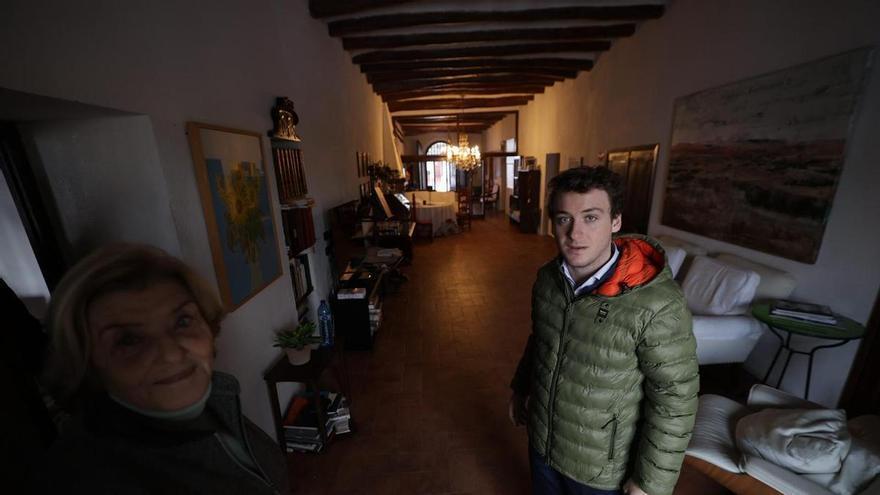 Ernestina Torelló, presidenta de las bodegas, junto a su nieto Paco, en la masía familiar, junto al lugar del accidente. /
