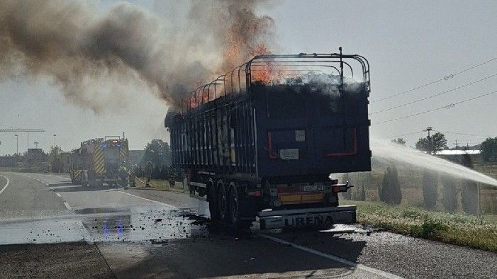 Tallada l’autovia LL-11 a els Alamús (Lleida) per l’incendi d’un camió que transportava ferralla