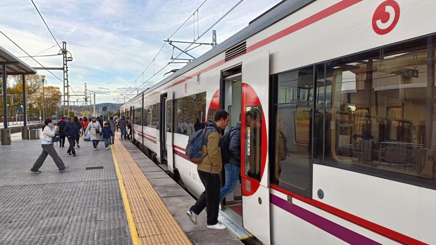 Usuaris d’un tren de mitjana distància a l’estació de Benicarló. /