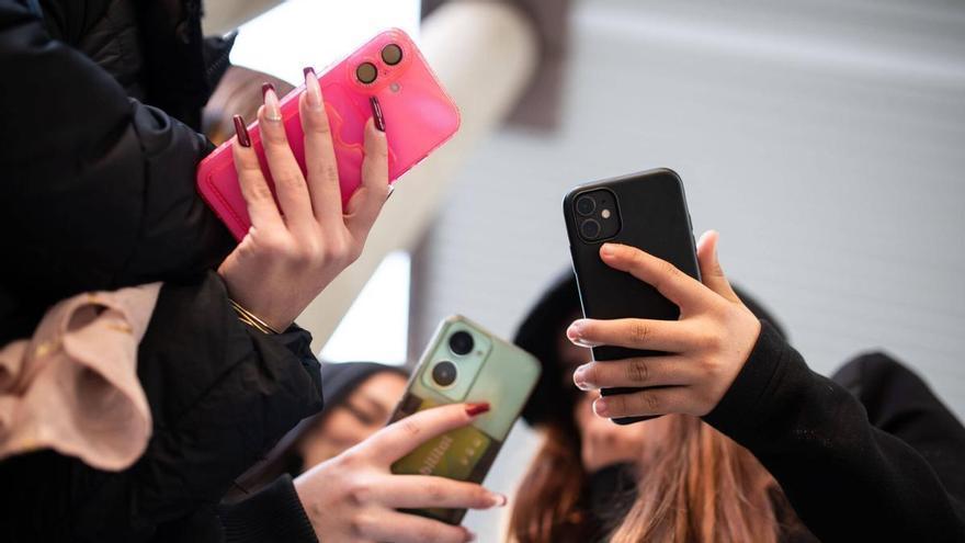 Uns joves utilitzen uns mòbils amb funda, en una imatge d’arxiu. /