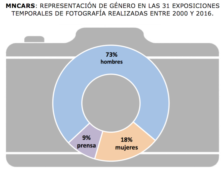 No sempre es va oferir formació artística a les dones, però la fotografia en els seus orígens no va tenir barreres d’entrada. Hi havia dones treballant la fotografia quan aquesta tecnologia va començar a veure’s als museus. Actualment, les exposicions de fotografia al Museu Reina Sofia no arriben a ser un 10% del total, però s’hi constata una infrarepresentació de fotògrafes.