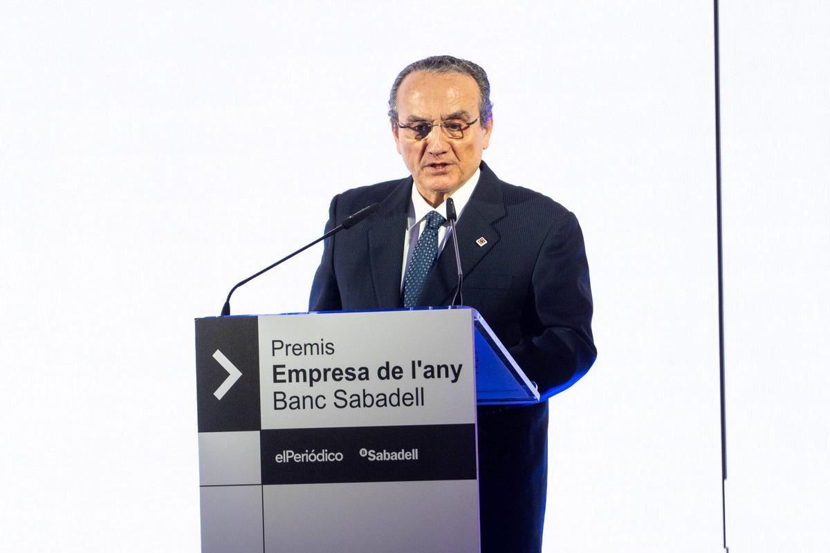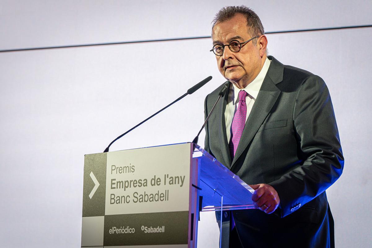 Intervenció de Josep Oliu, president de Banc Sabadell, durant la gala dels Premis Empresa de l'Any 2025 celebrada en el Palauet Casades. -